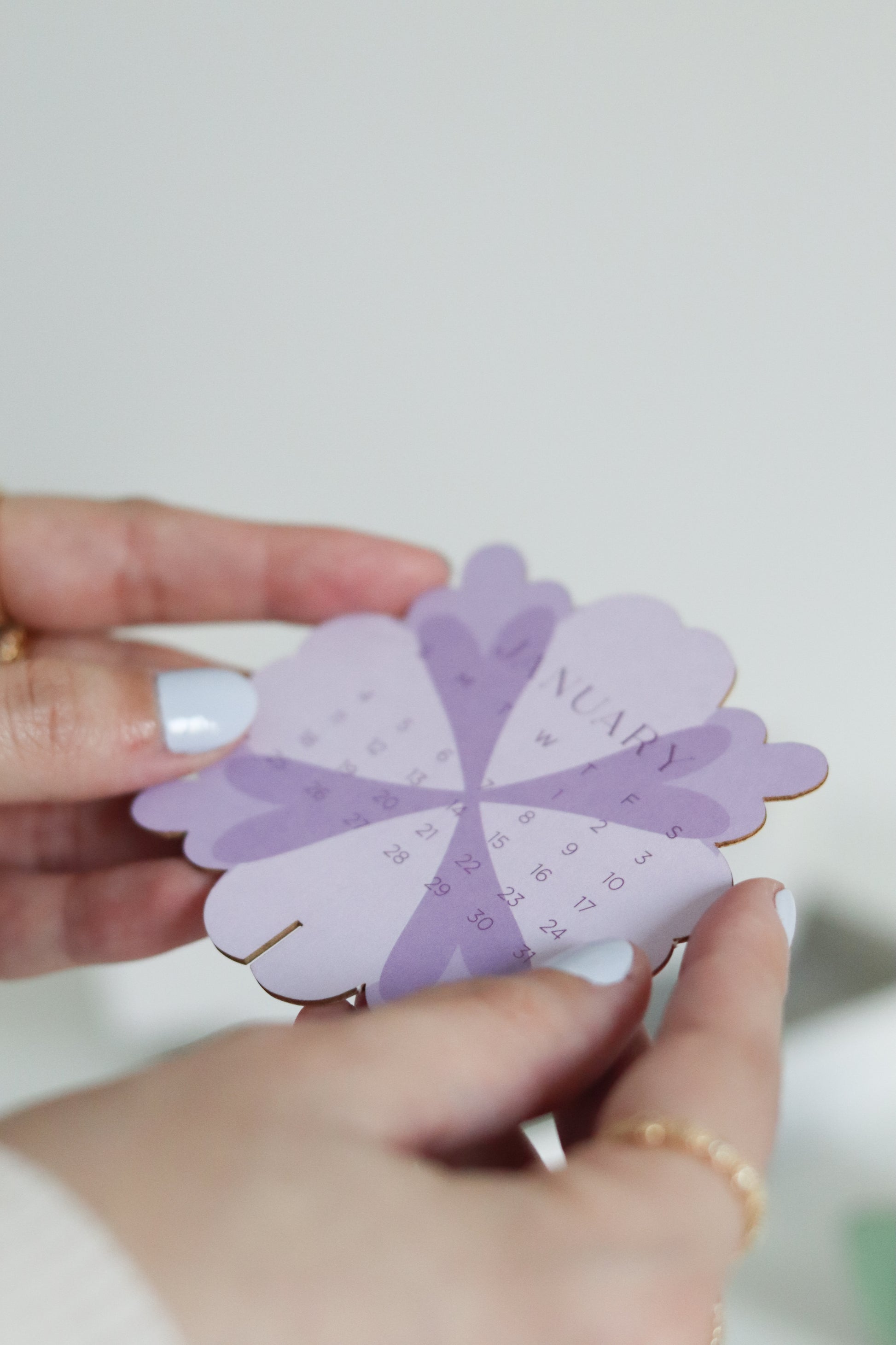 - Puzzle-style desk calendar with pop-out monthly flowers