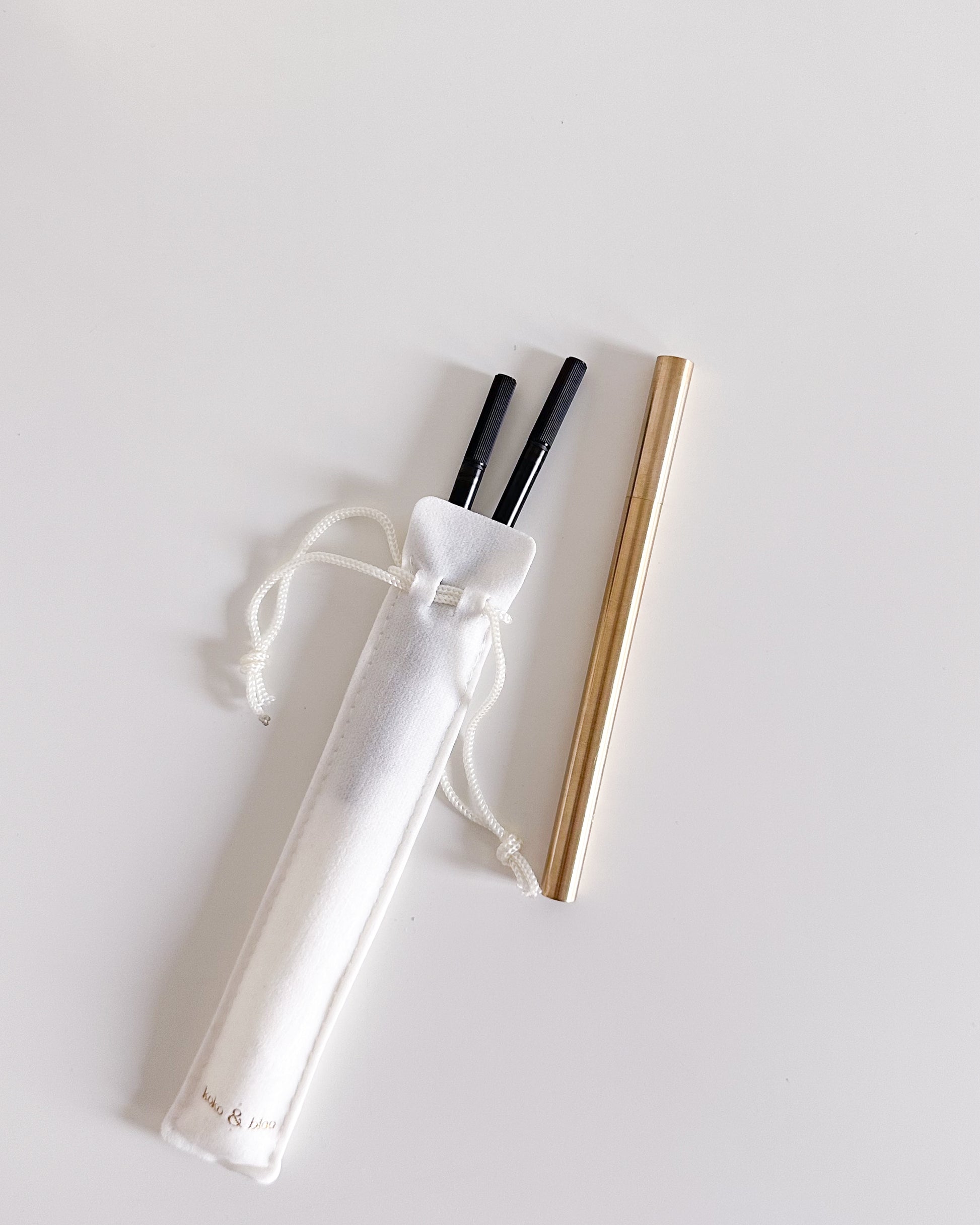 Two refills included! All brass ballpoint pen. 0.7mm thickness with black ink. Flows smoothly on paper, perfect for taking quick notes, handwritten letters and just looks elegant on your desk!