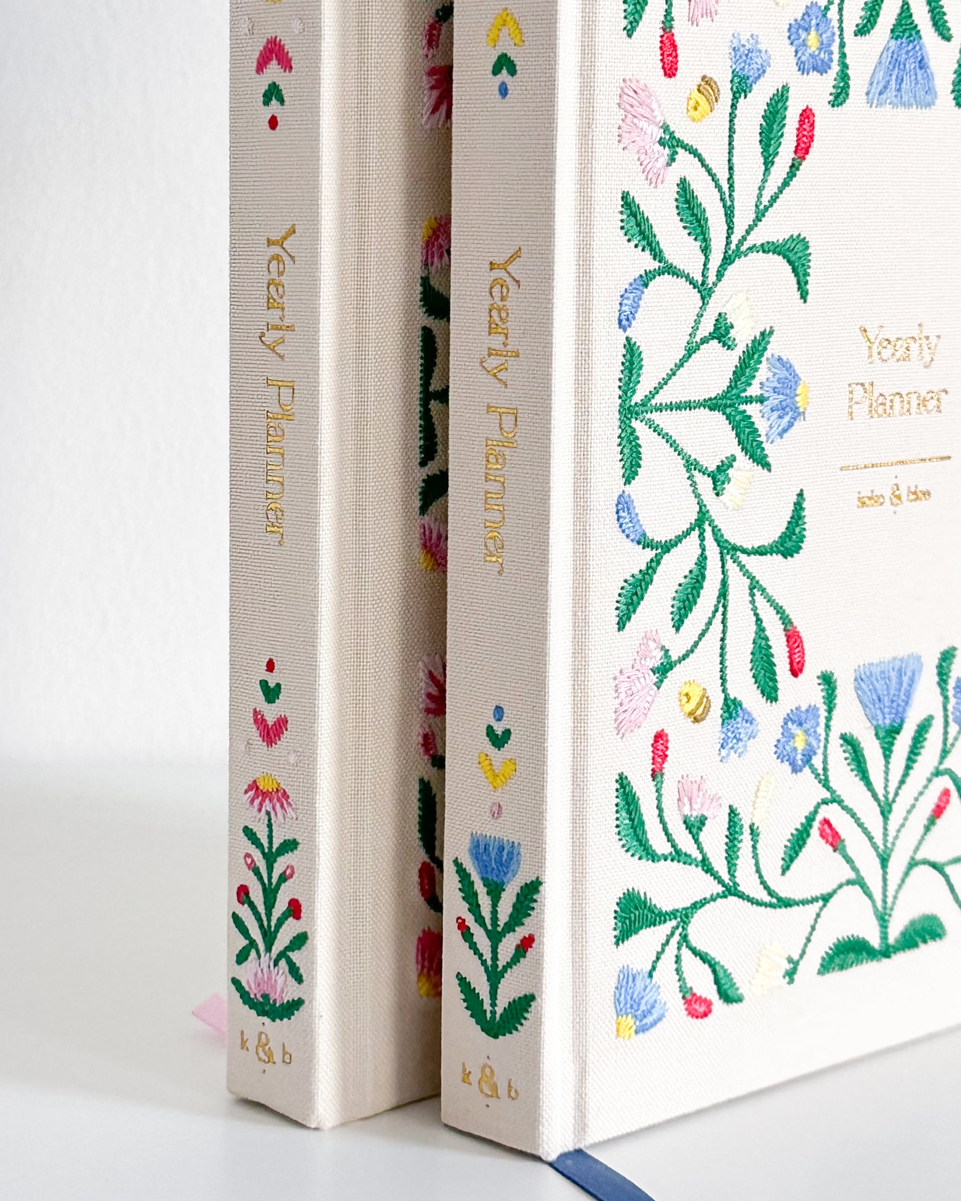 Based on our viral 2025 Yearly Planner! Plan, reflect and create with our thoughtfully designed 2026 yearly planner. This embroidered linen hardcover planner, featuring delicate stitched details and our signature soft florals, is an undated planner made for flexibility, allowing you to begin your journey any time of the year without worrying about wasted pages. Inside, you’ll find monthly reflections, overviews and a yearly calendar to help you stay organized and inspired at every step. The key dates section keeps your important moments in view, while the mood tracker and yearly reflection pages let you celebrate your personal growth.