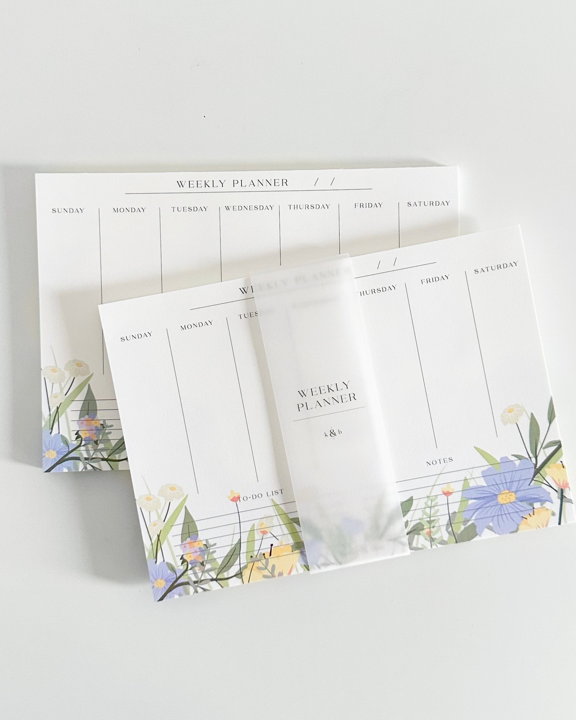 - Two floral weekly planners (a5 size)
