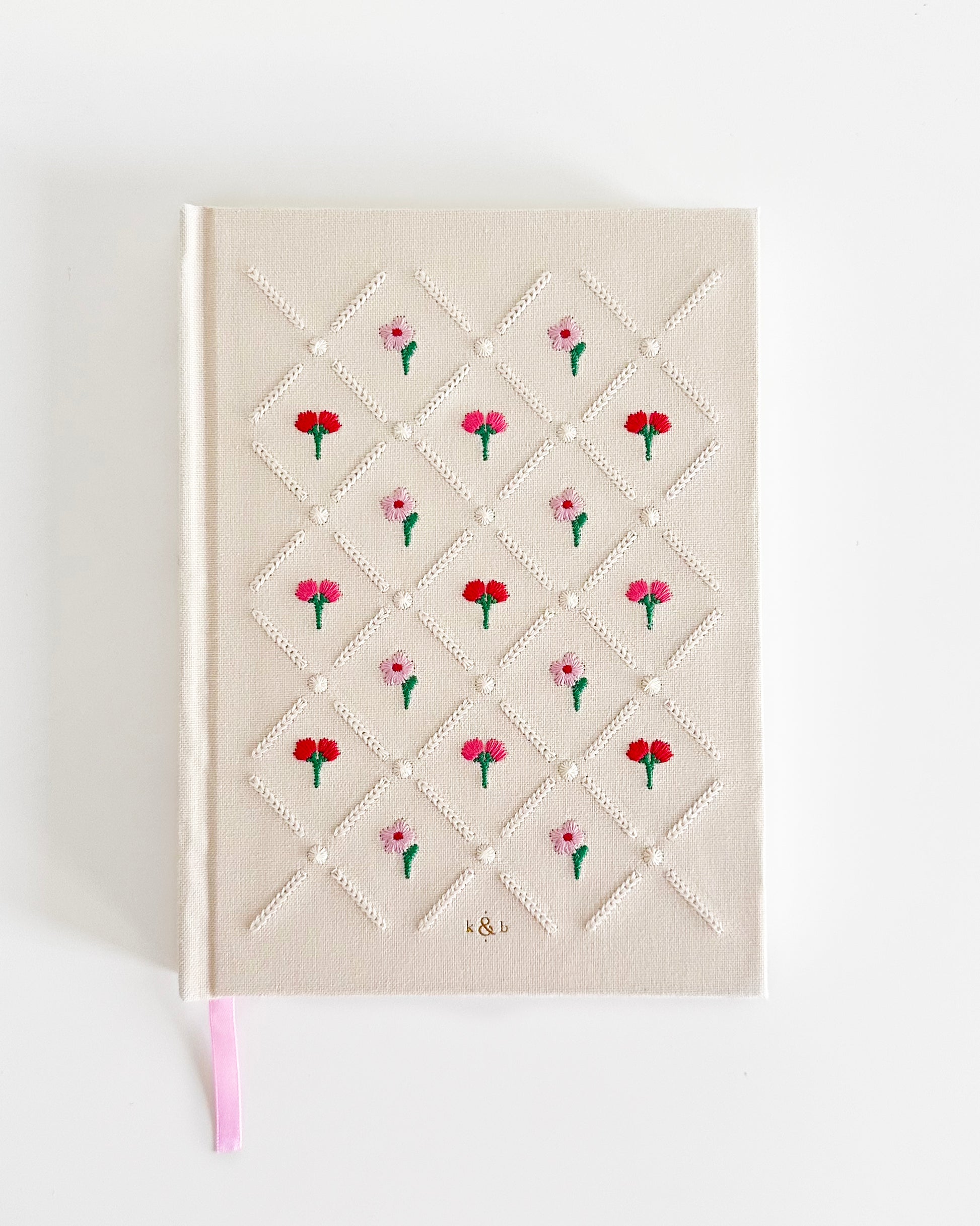 A journal that’s designed to grow with your ideas. Our embroidered linen bullet journal features a beautifully textured cover adorned with soft floral embroidery, giving it a warm handcrafted charm. Thoughtful details and a cozy tactile feel make it the perfect space for your creativity to unfold.