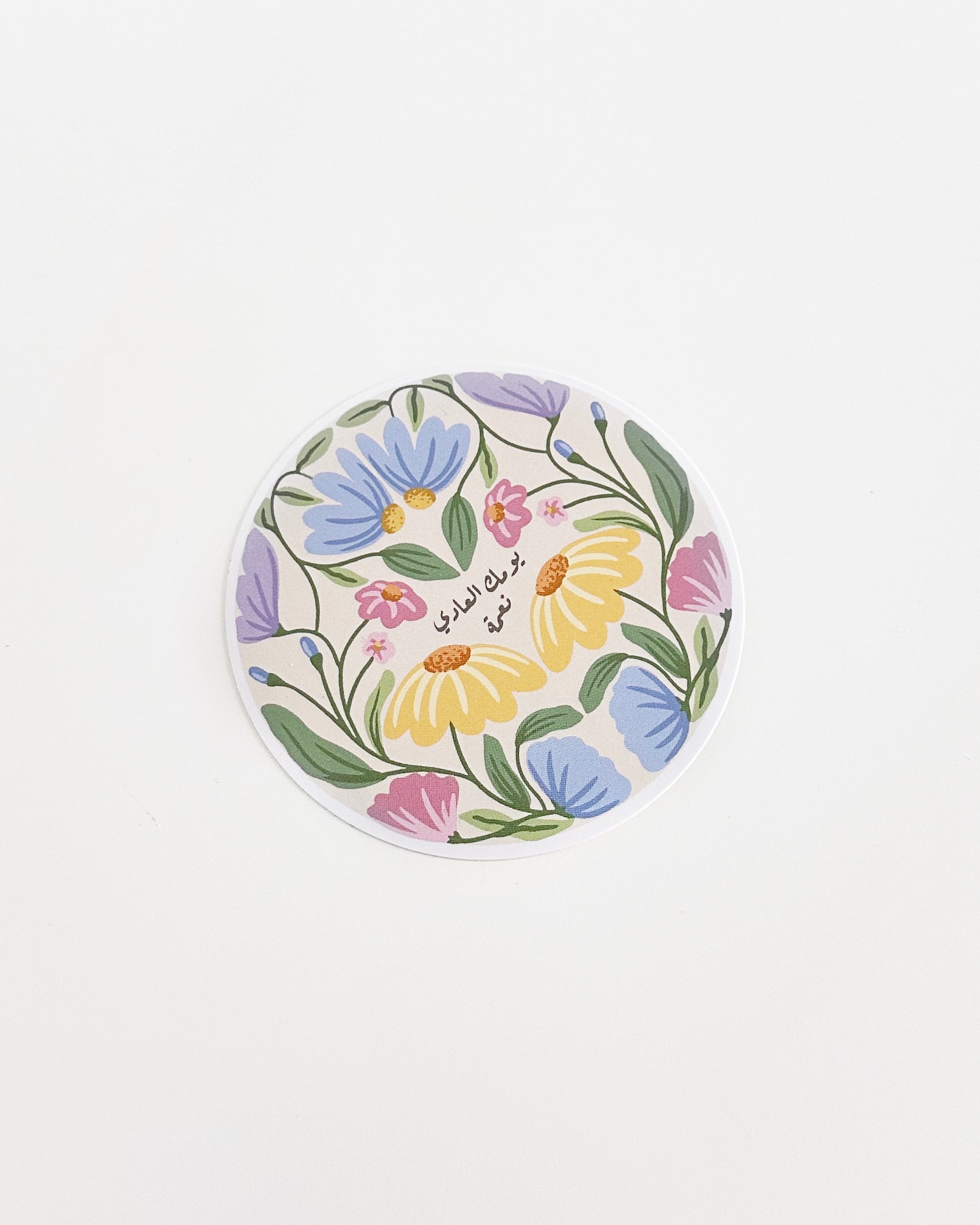 A beautifully illustrated floral design with the Arabic phrase "يومك العادي نعمة" meaning "The normal days are a blessing," serving as a gentle reminder to appreciate life's simple moments.
