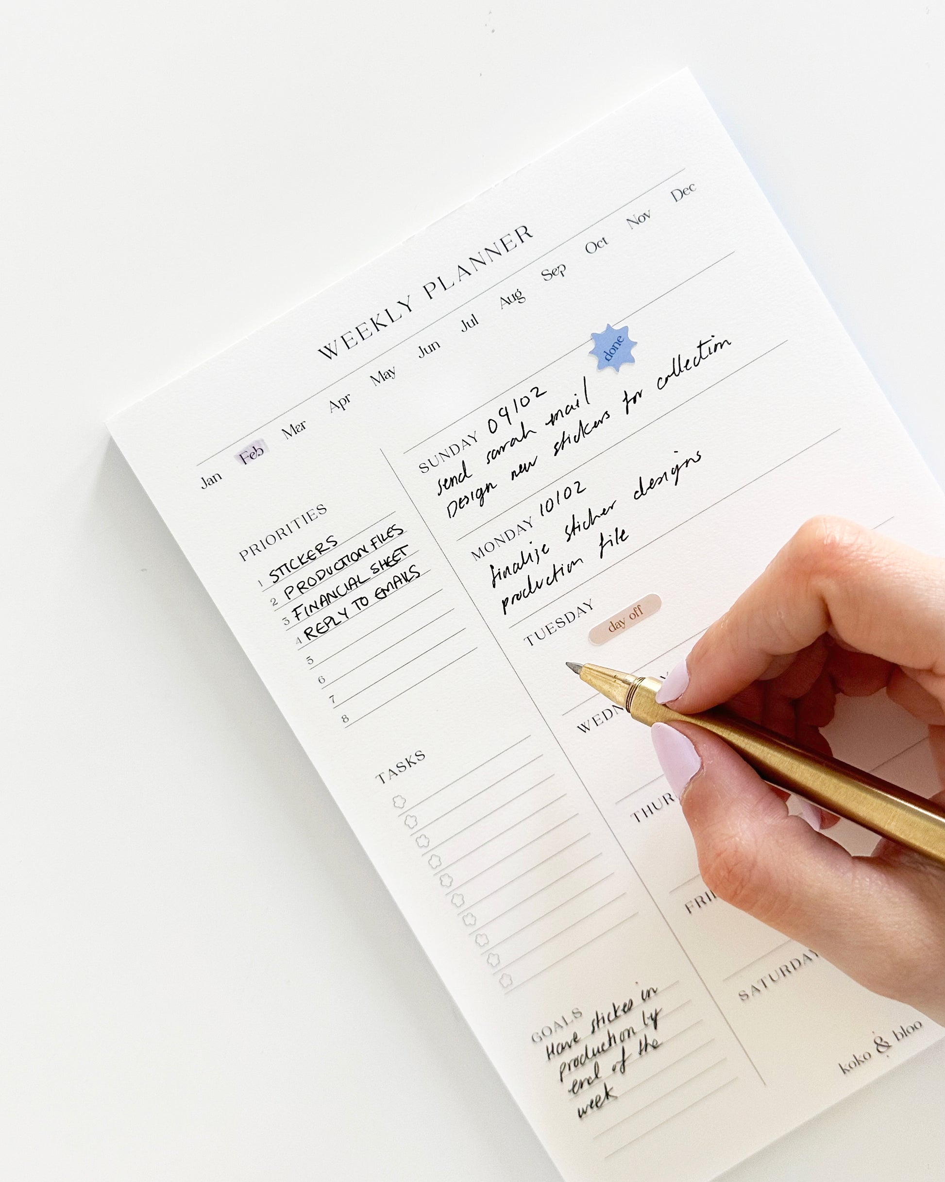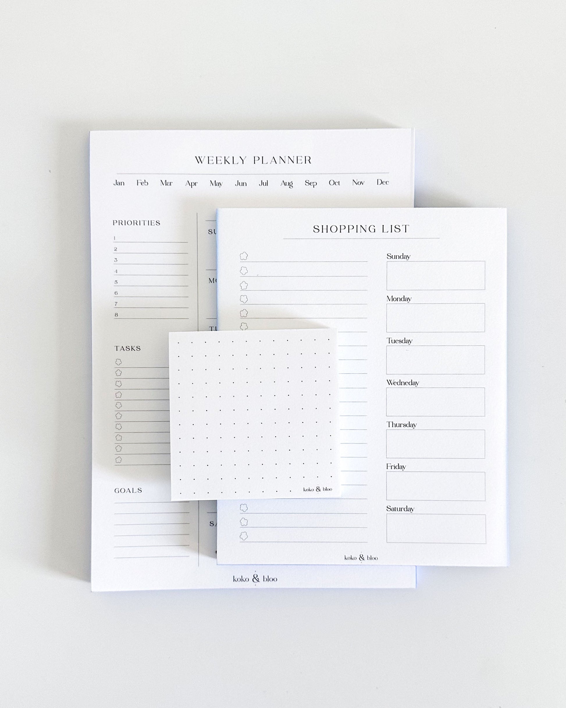 The perfect bundle for list-makers and day-planners who love putting pen to paper. This compact and practical set includes our portrait-style A5 weekly planner to map out your week at a glance, a mini dot grid pad for doodles, ideas, or habit tracking, and a magnetic shopping list to keep your groceries (and sanity) in check, right where you need it most, on the fridge.