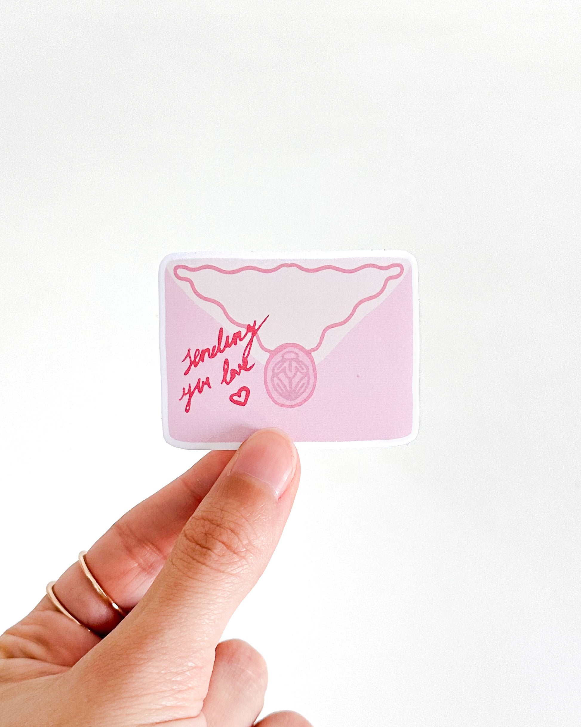Send a little love, anytime. Our Love Letter Sticker is shaped like a tiny envelope with the words “Sending You Love”written across the front, sweet, simple, and full of heart.