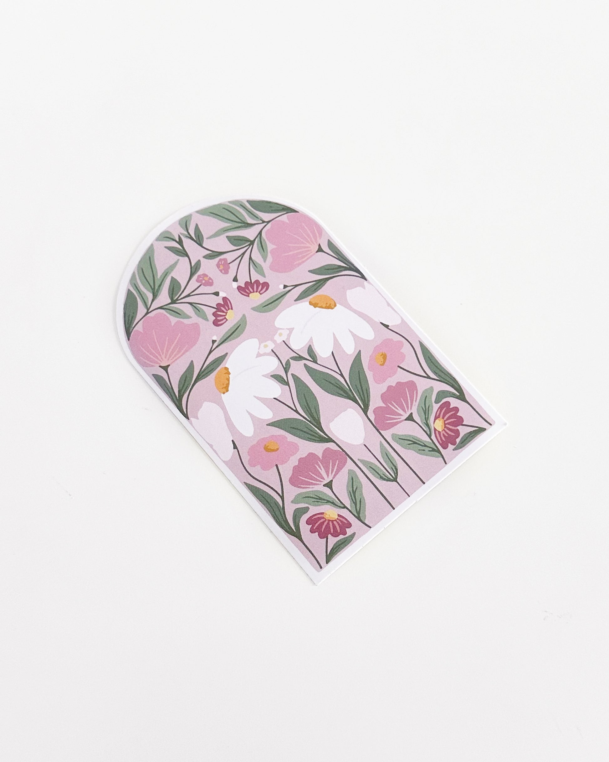 A soft pink floral design in an elegant arched shape, perfect for adding a subtle touch of nature to your stationery or accessories.
