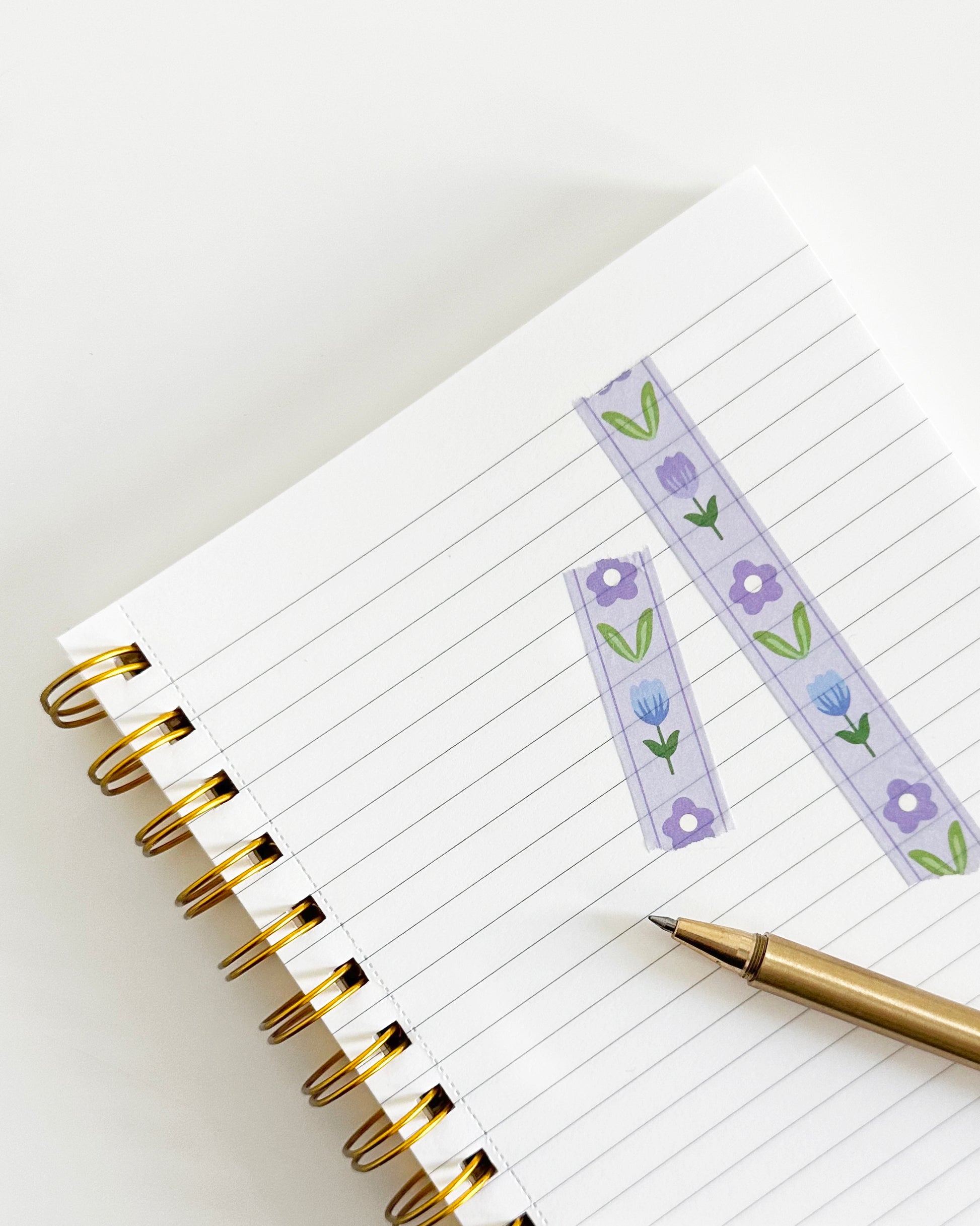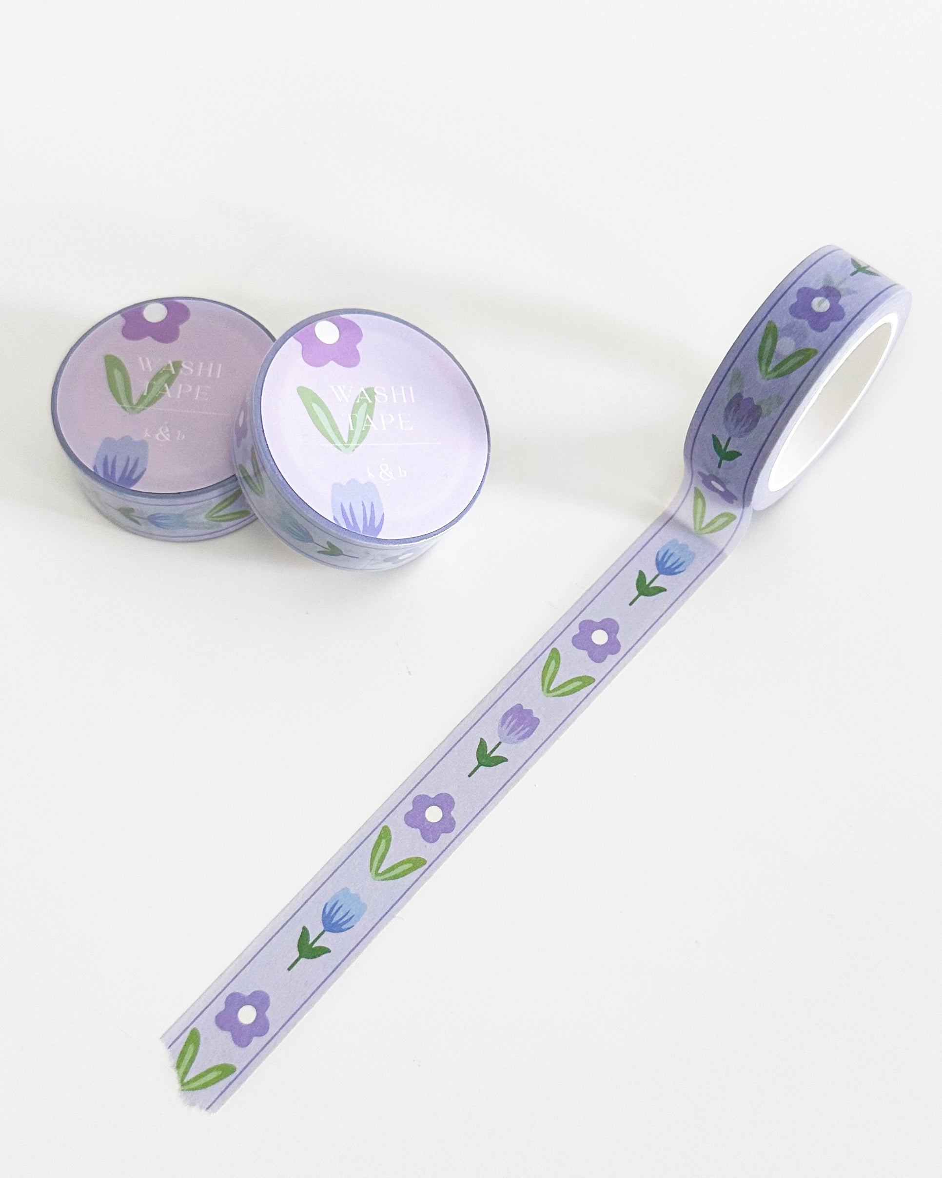 A beautiful repeated pattern of purple and soft blue flowers, this tape adds a charming, floral touch to your planners, journals, and crafts.
