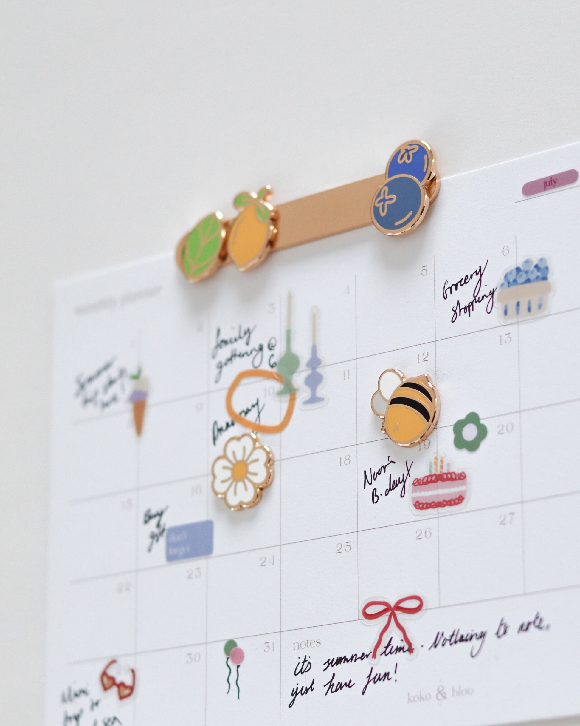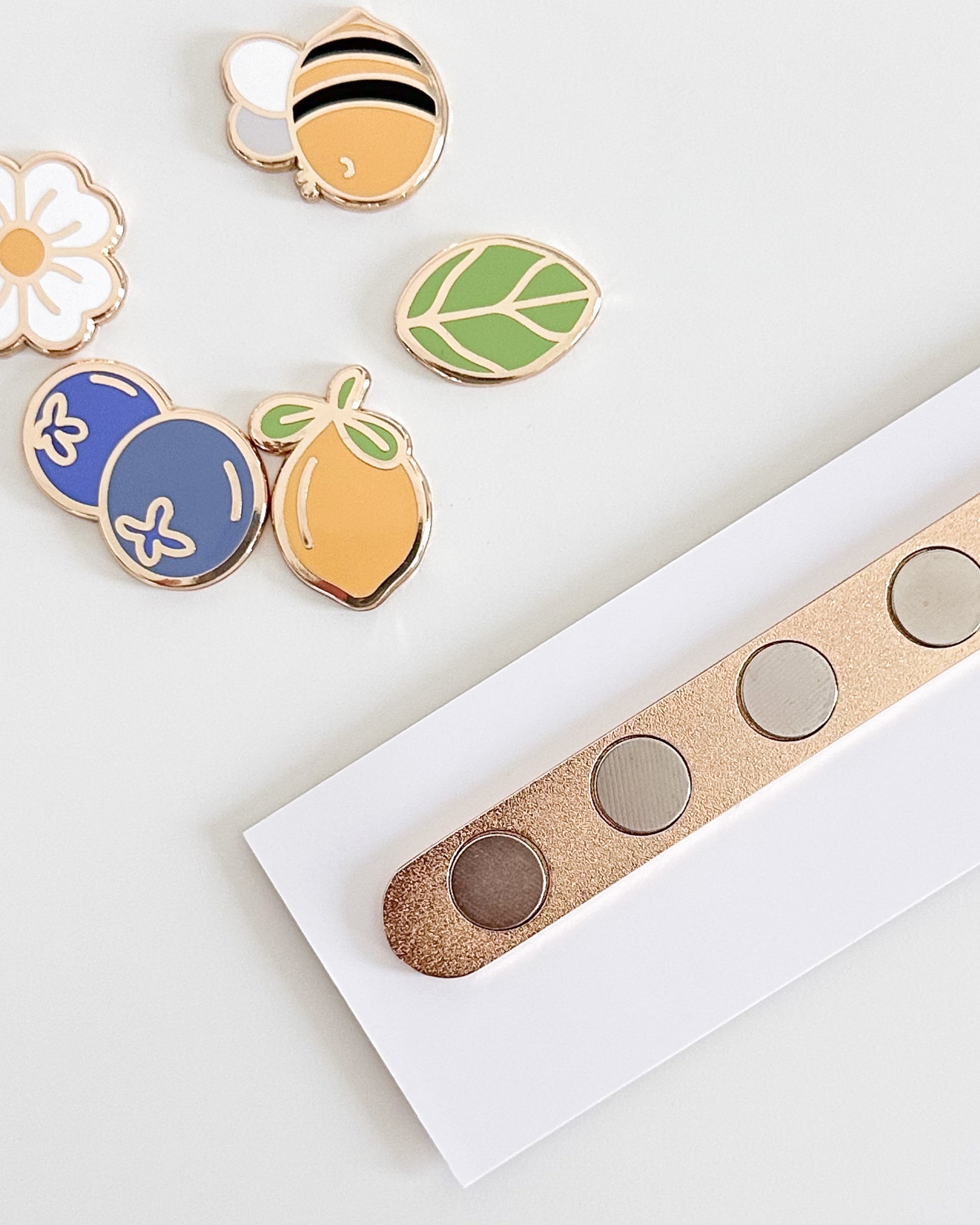 Add a little charm to your fridge with our Fridge Magnet Set, a playful and practical set featuring a long magnetic bar and five mini magnets you can rearrange or use separately. The set includes our favorite icons: Blueberry, Beeatrice the Bee, Lemon, Green Leaf and a White Flower, each with its own character and charm.