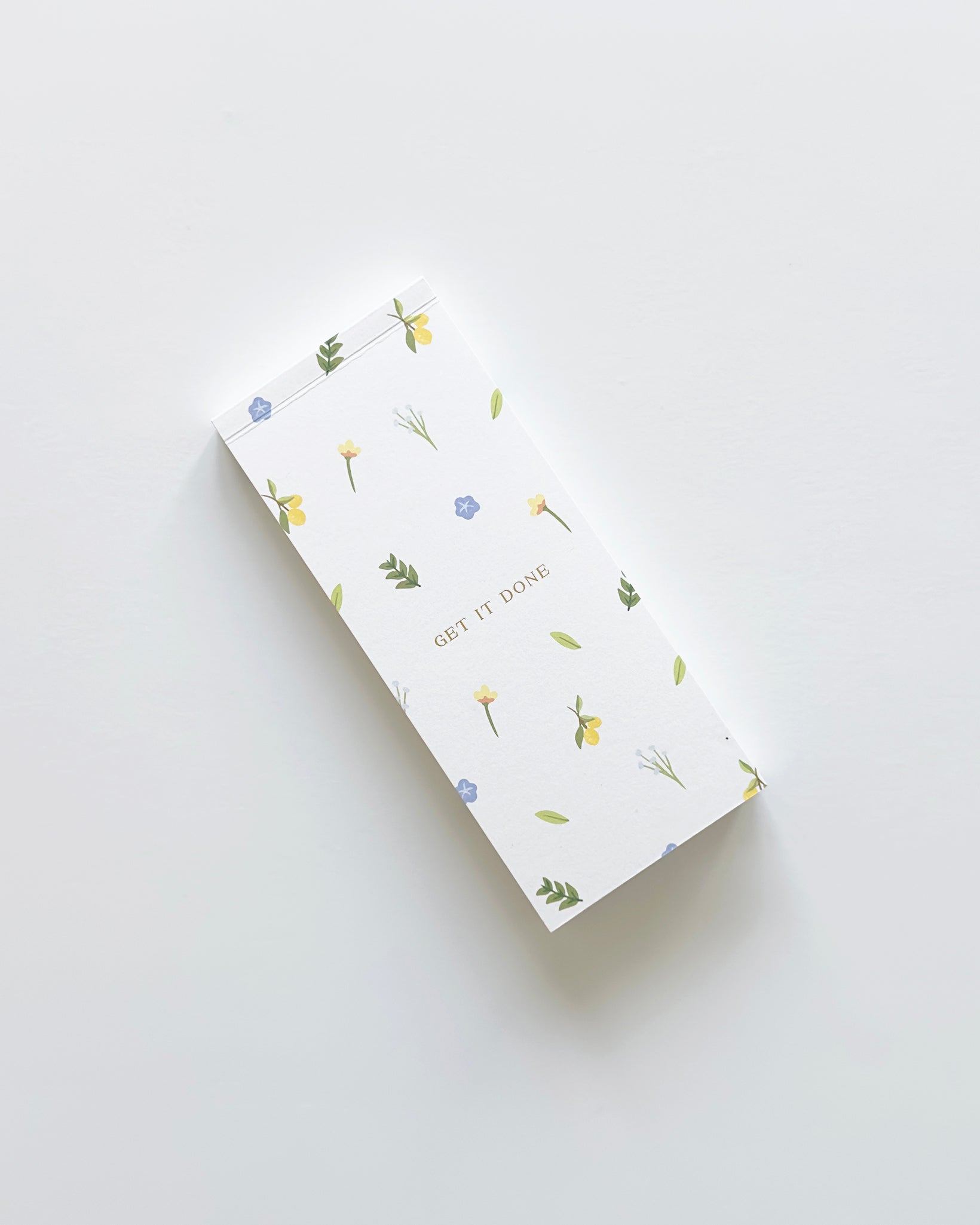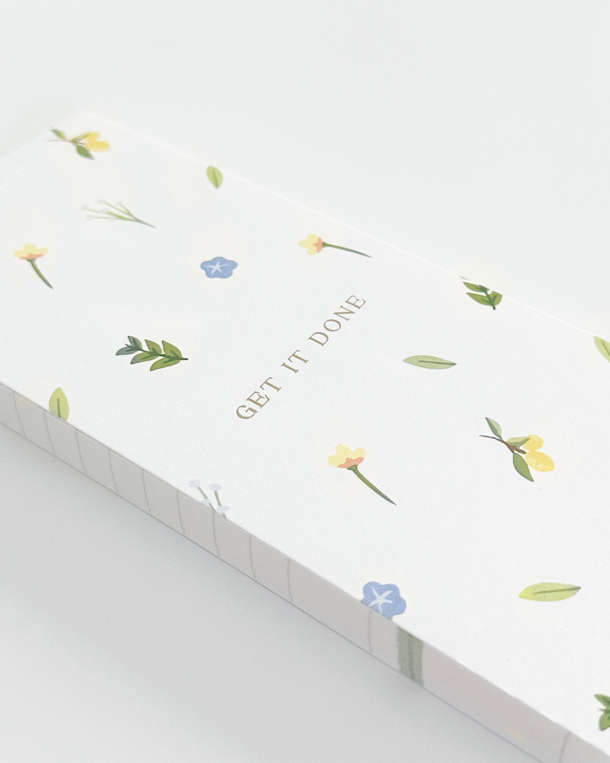 Floral to-do list notepad with 80 easy tear sheets. Hot foil detail on the cover. Cover is hand-illustrated and printed on thick card. Designed to help you keep track of all your daily tasks, big or small.