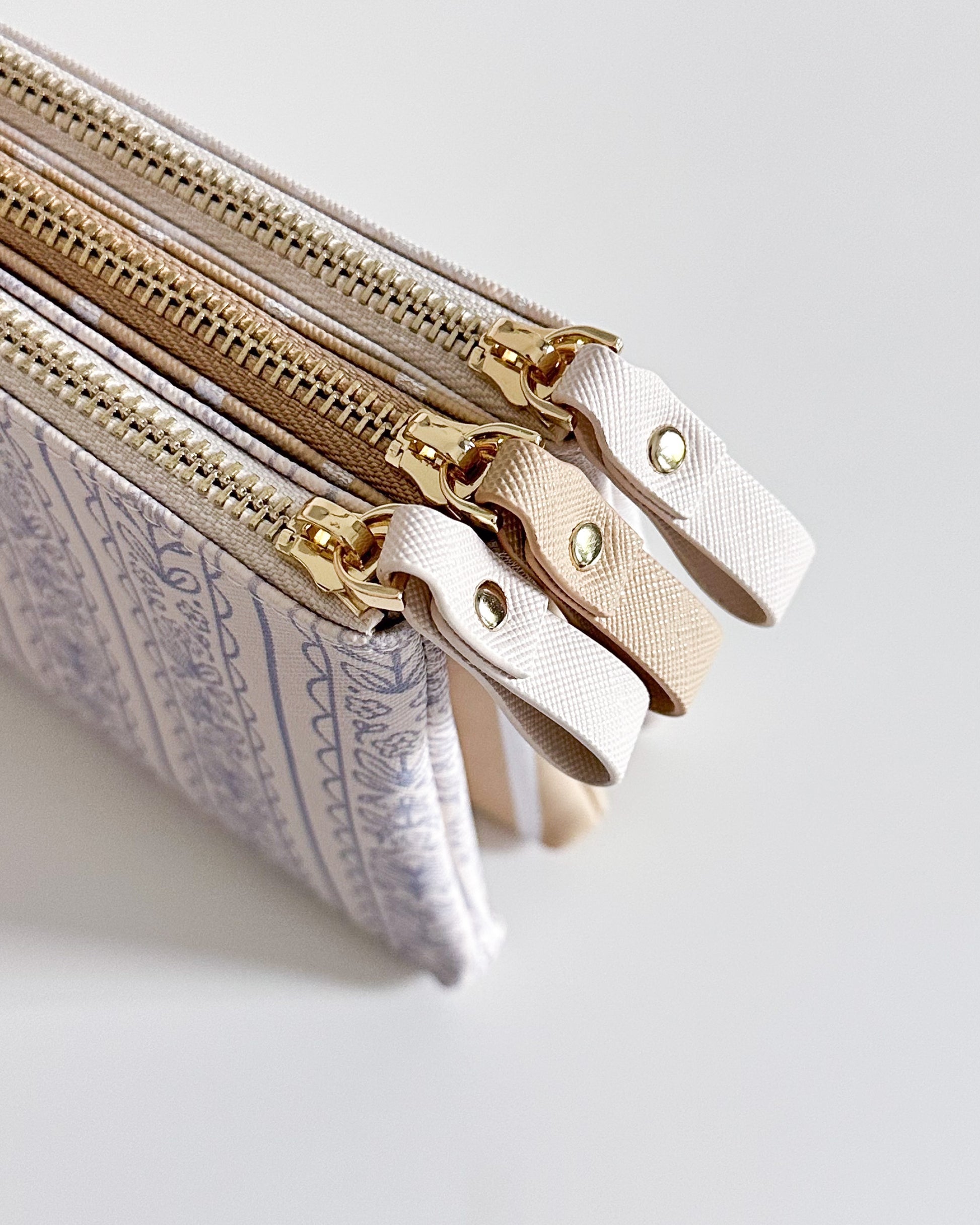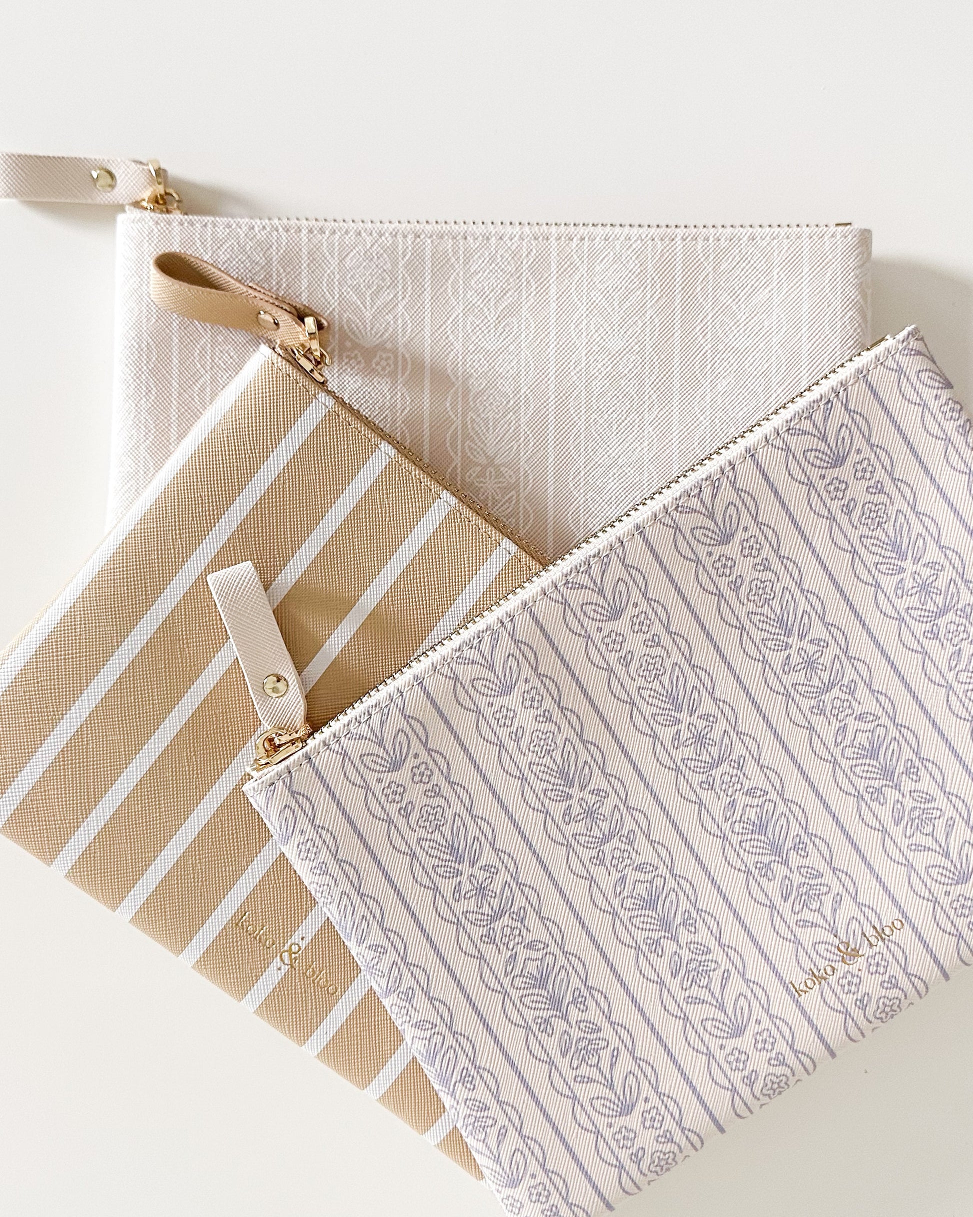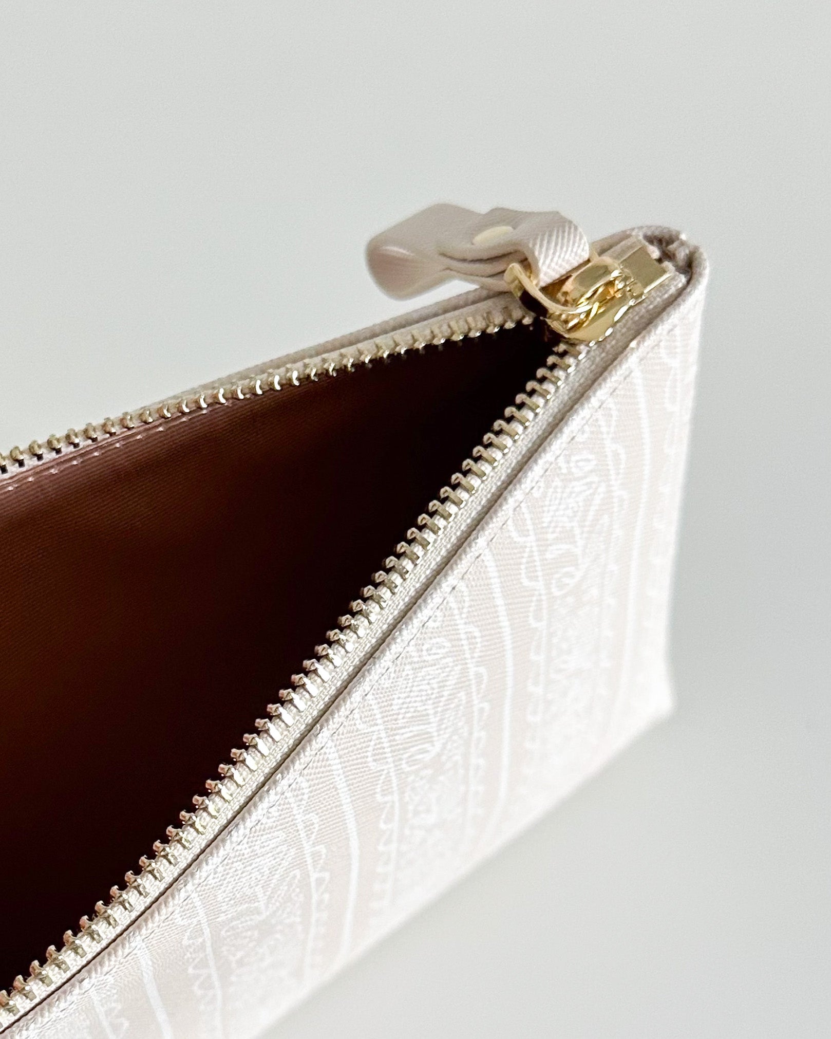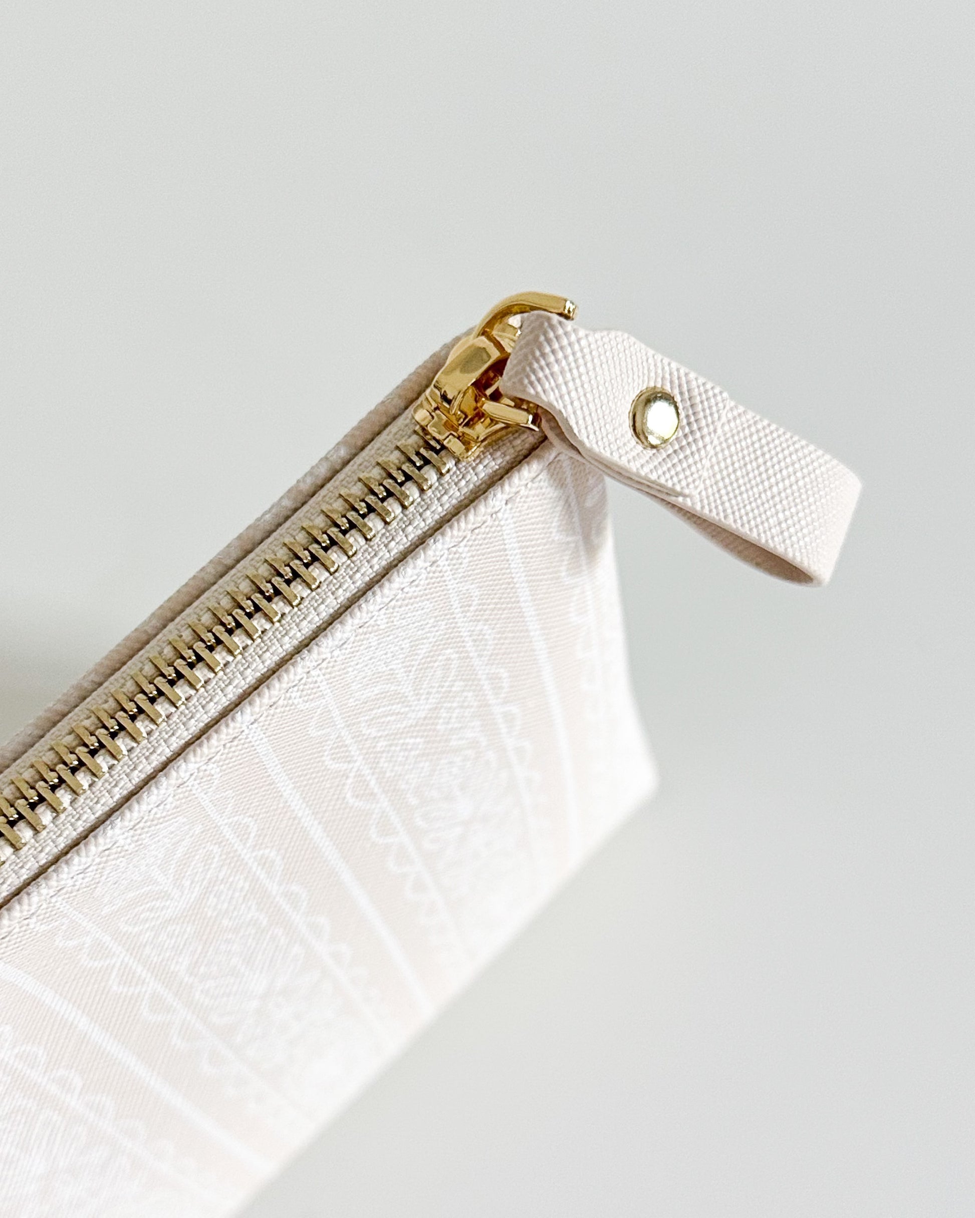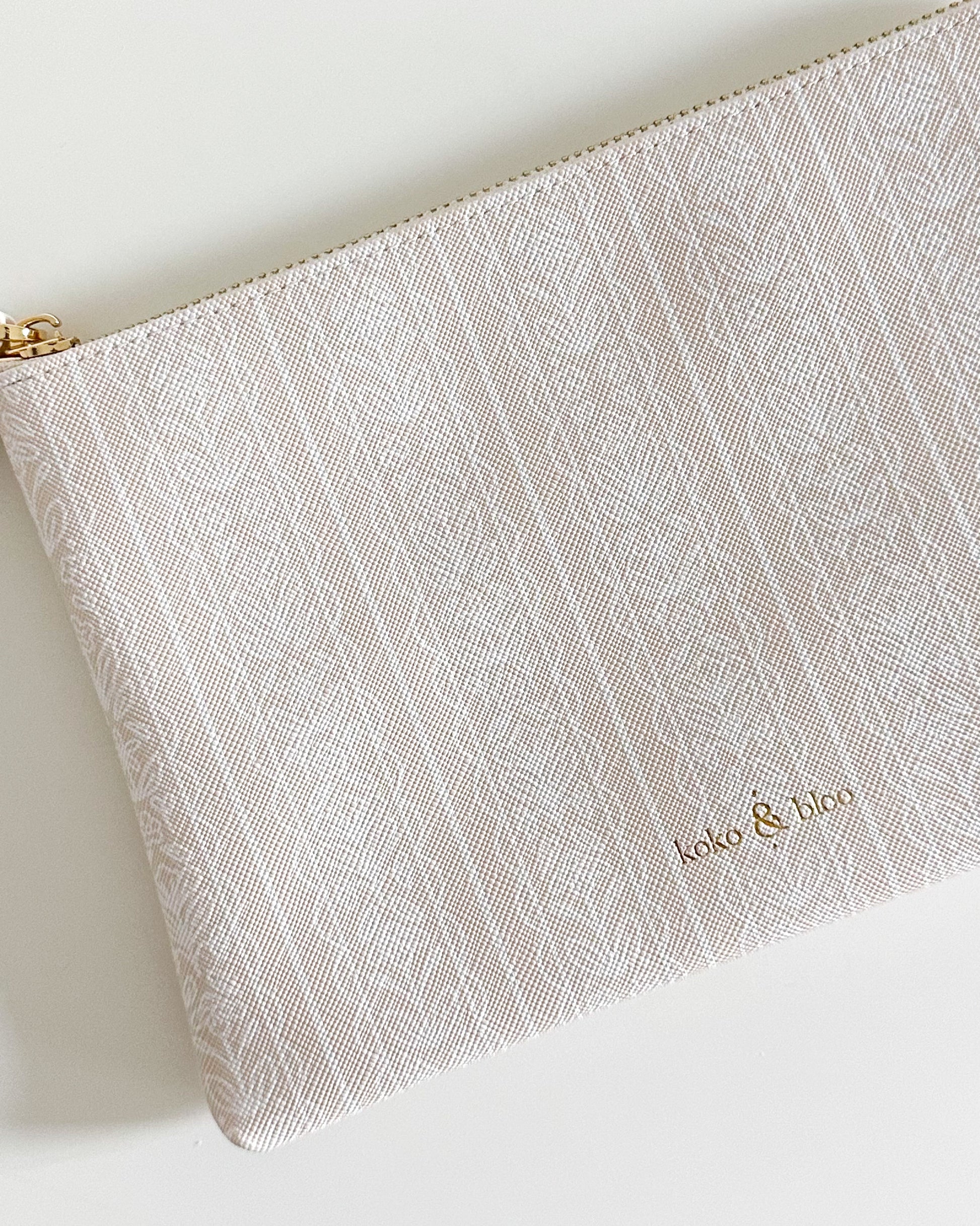 Keep your essentials close in style with our on-the-go pouch, a versatile everyday companion for beauty products, pens, tech accessories and everything in between. Compact yet roomy, it’s designed to slip easily into your bag without adding bulk.