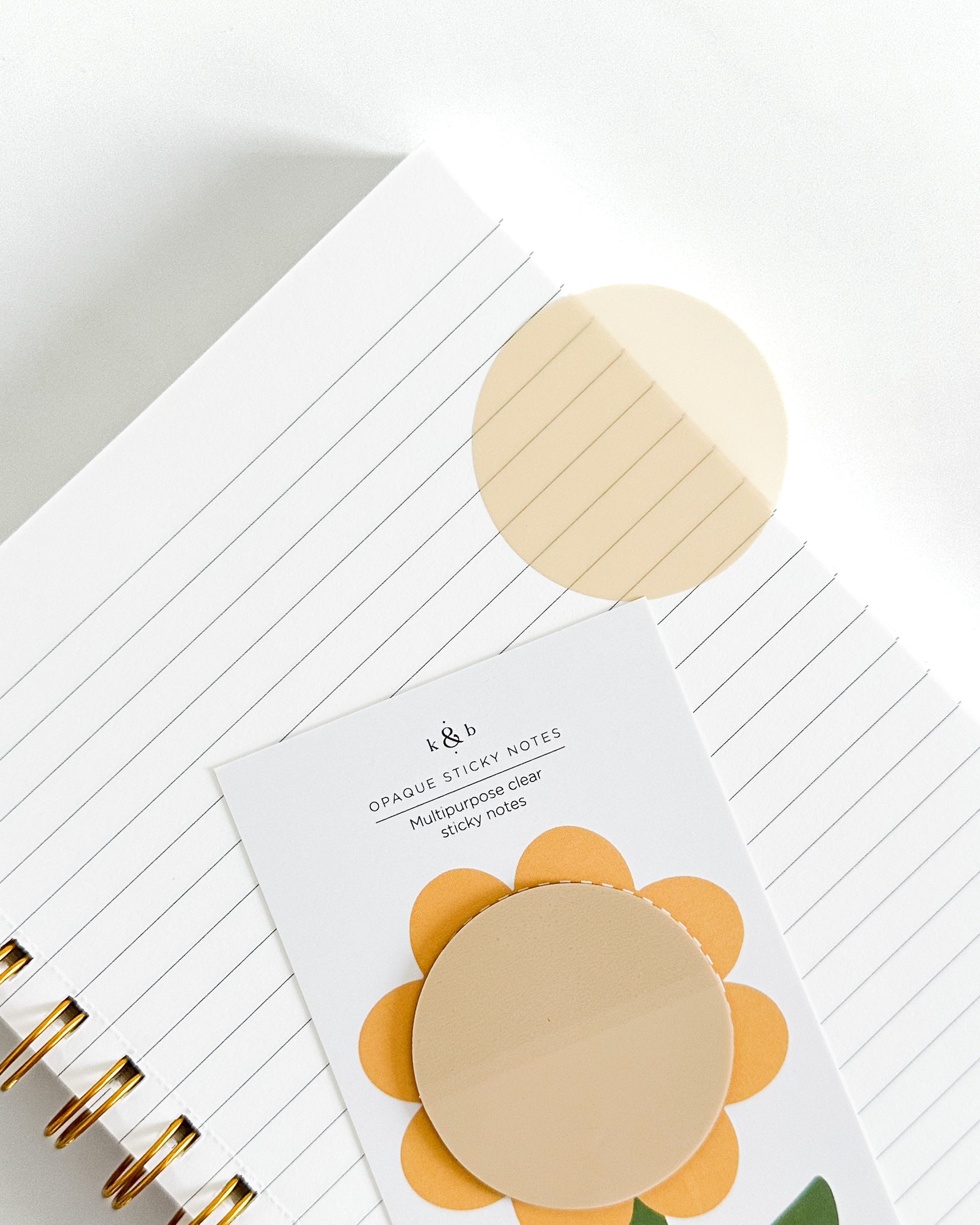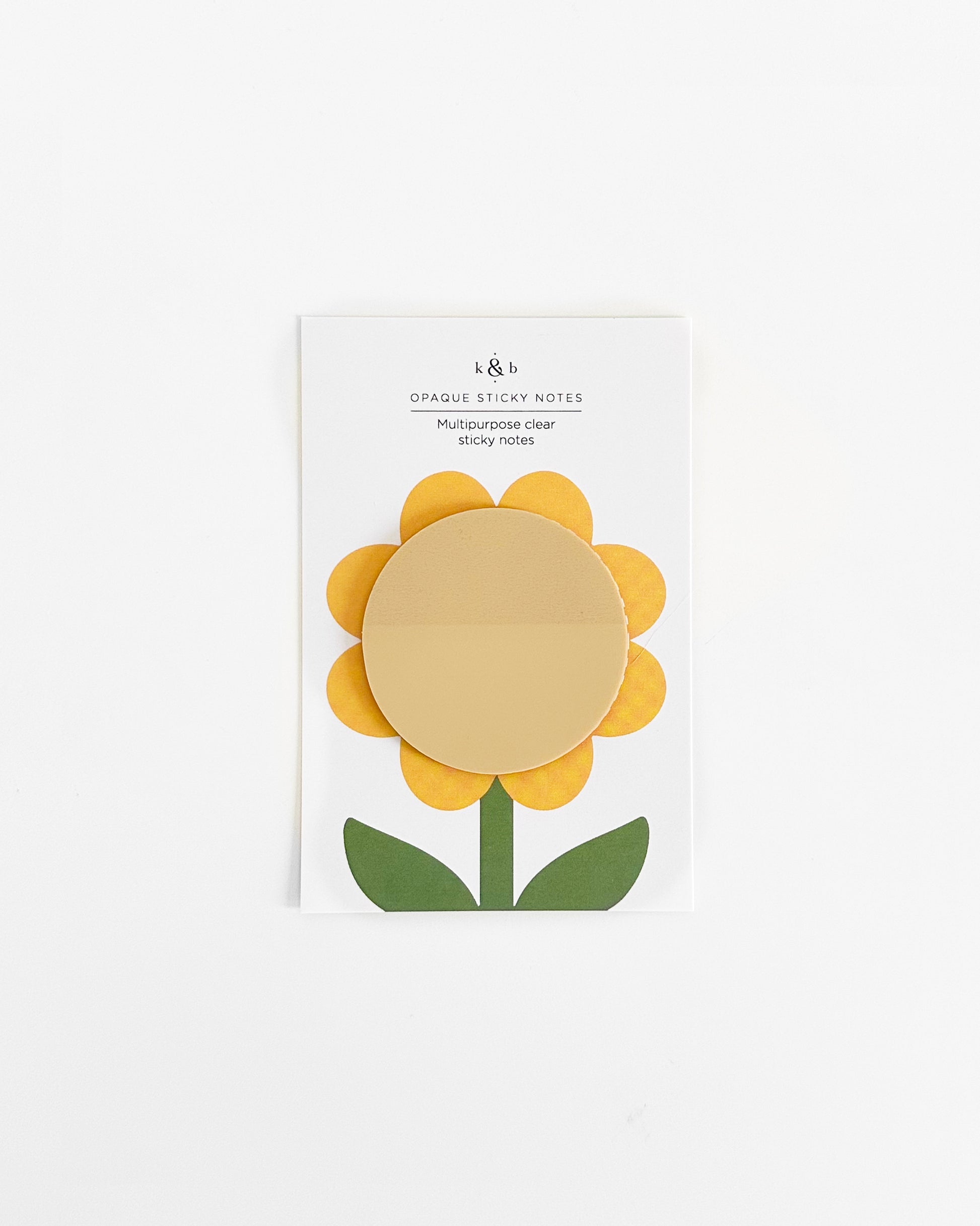 Opaque 5cm sticky notes with 30 sheets, placed at the center of a printed flower on a backing card. The flower itself is part of the card design, making each note look like a blooming petal.
